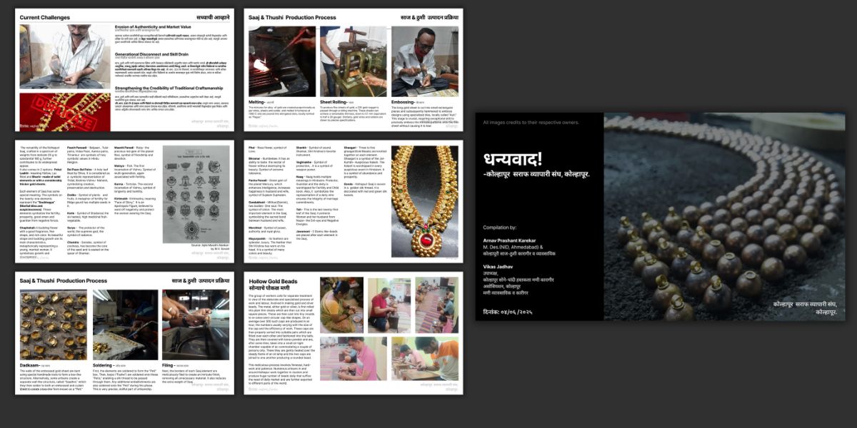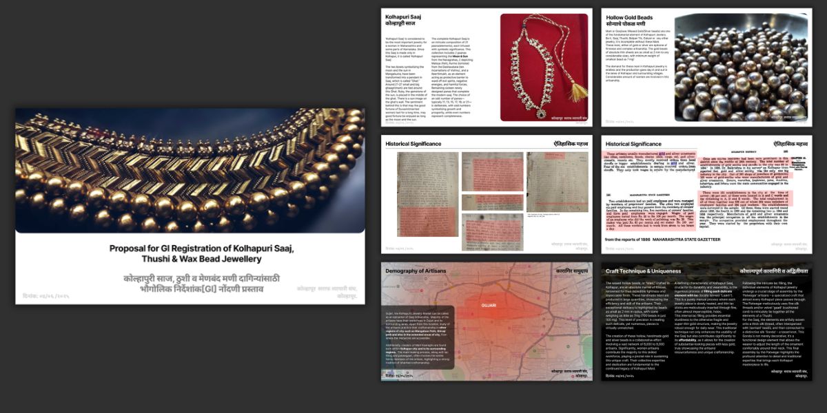 This research report, prepared for the Kolhapur Saraf Vyapari Sangh, supports the application for Geographical Indication (GI) status for traditional Kolhapuri jewelry, specifically Kolhapuri Saaj, Thushi, and Mani jewelry.